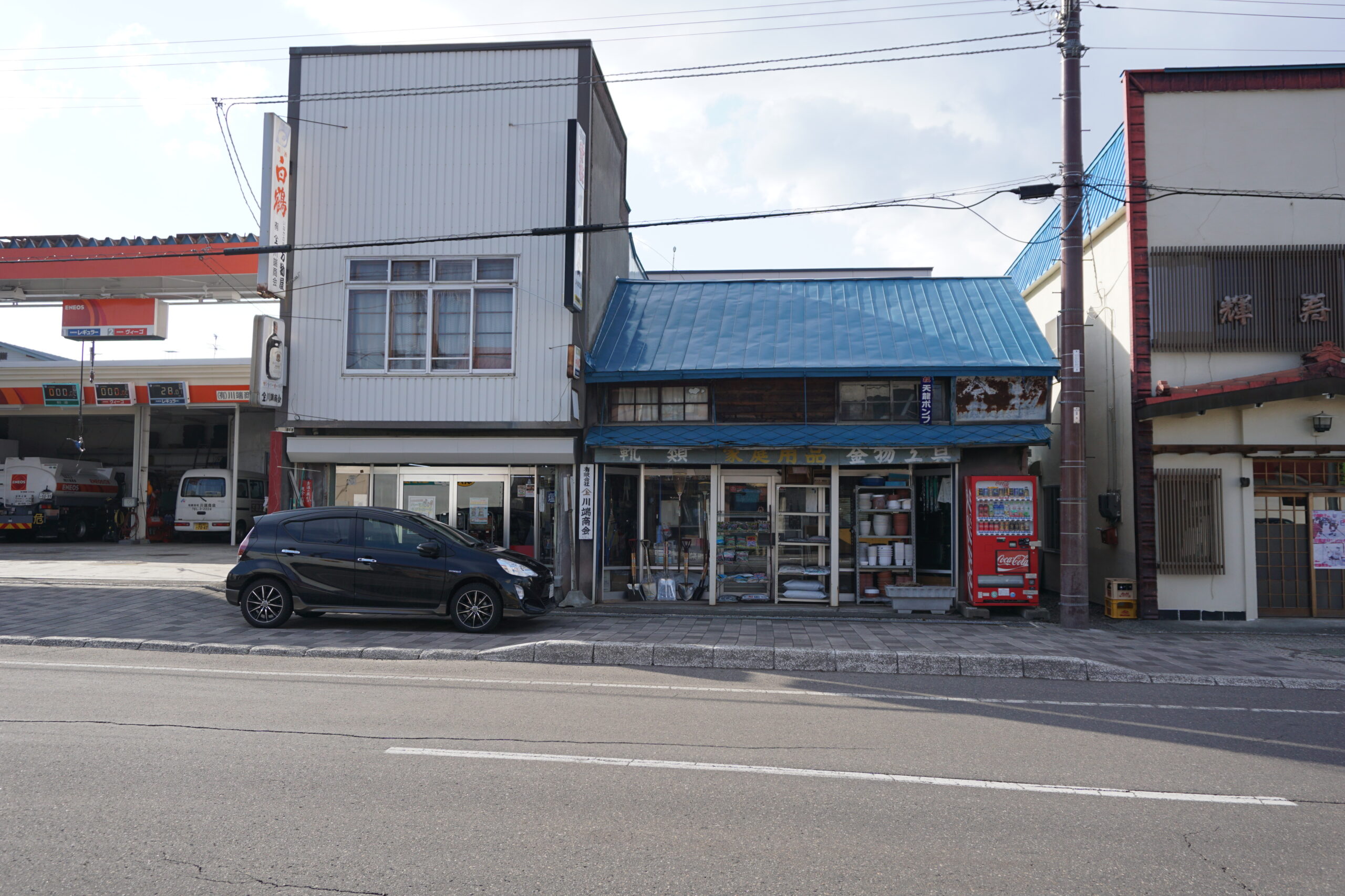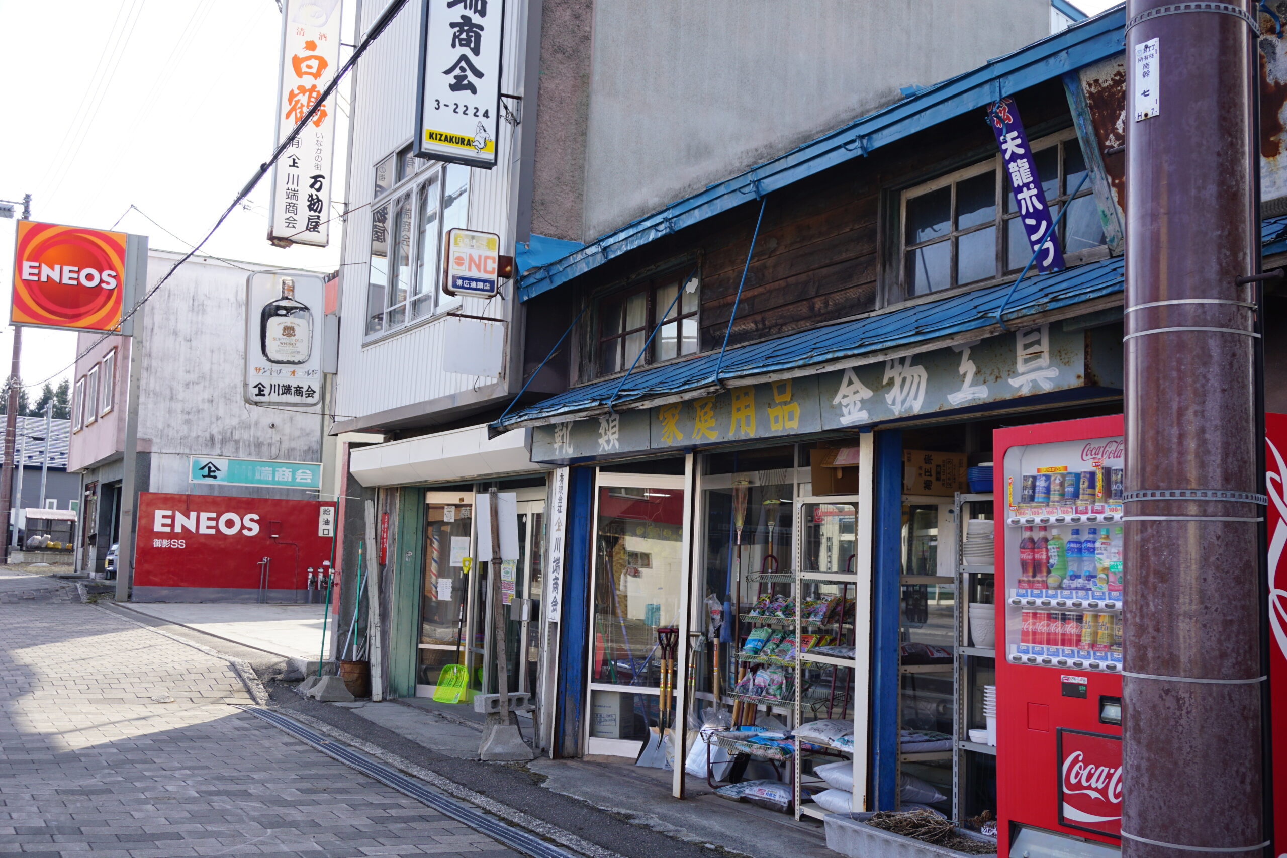 ガソリン、金物、酒屋。御影の個人商店。2018年4月9日撮影。